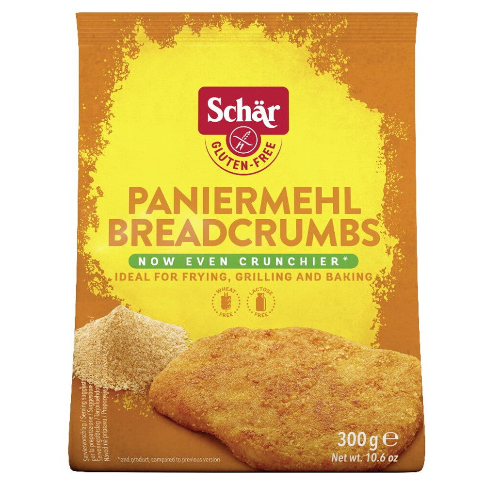 Glutenfreies Paniermehl der Marke Schär für eine knusprige goldbraune Kruste. Umhülle deine Fleisch, Fisch und Gemüse Gerichte in die herrlich knusprige, goldbraune Panade, die jeder liebt. Mit unserem Paniermehl aus Zwieback hergestellt, geht das Knuspern absolut ohne Gluten.