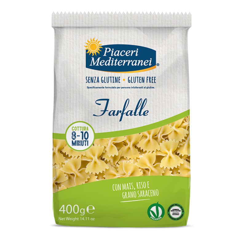 Piaceri Mediterranei Mehrkorn glutenfreie Farfalle 400g Nudeln aus Maismehl, Reismehl und Buchweizenmehl. Kochzeit: 8-10 Minuten