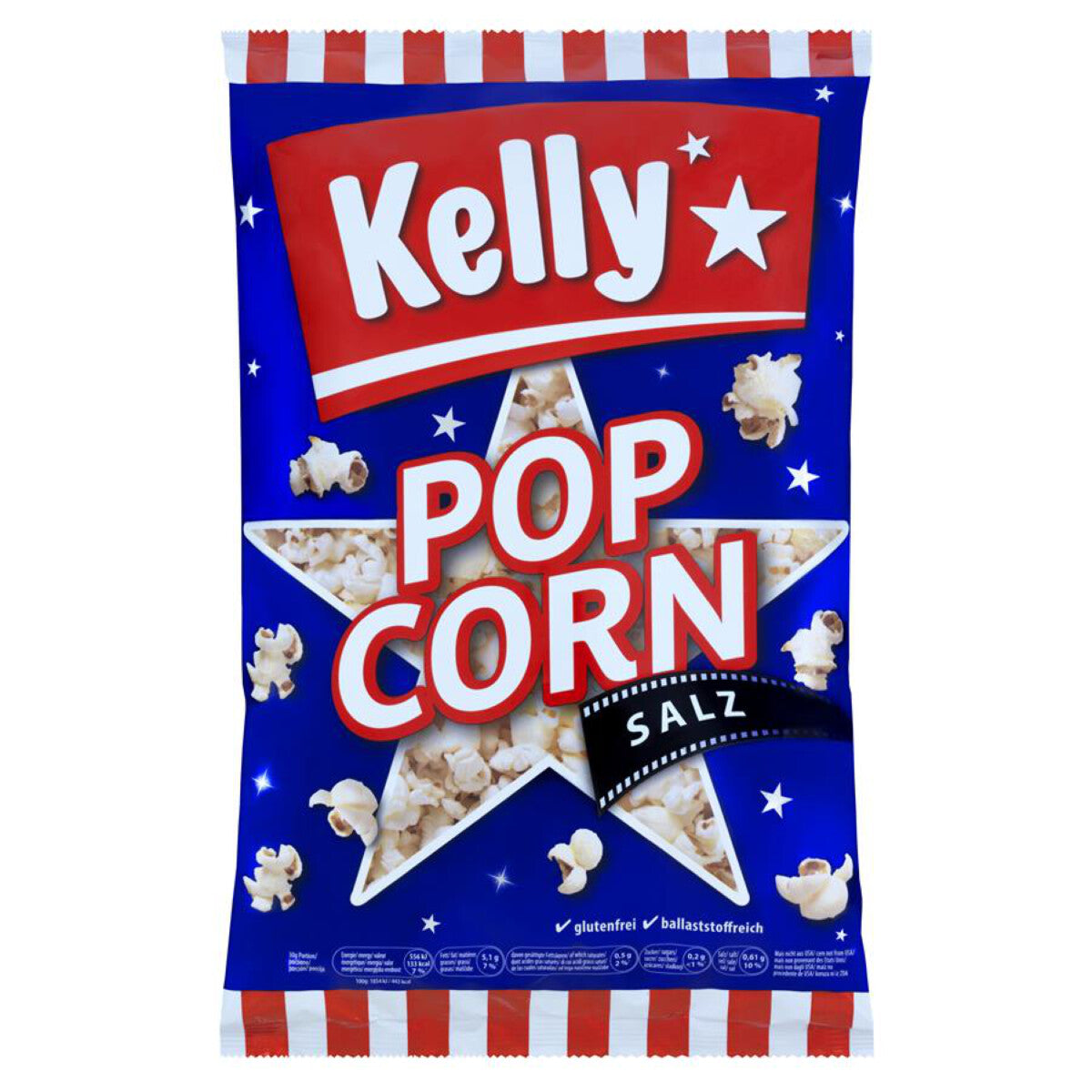 Kelly Popcorn Salz glutenfrei- zarter Mais, frisch gepoppt, nicht zu viel und nicht zu wenig gesalzen! Luftig leichter Knabberspaß, wenig Fett, leicht und reich an Ballaststoffen, mild gesalzen.