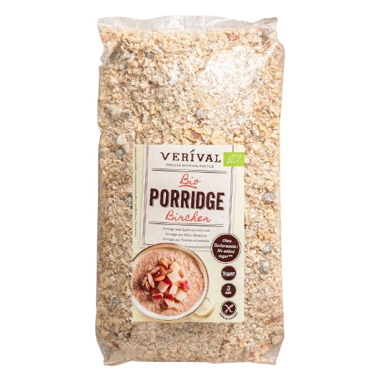 Als moderne Kombination und Neuinterpretation zweier der ältesten Frühstücksspeisen in der Geschichte, nämlich jener aus Bircher Müsli und Haferbrei, lässt unser Bircher Porridge keine Frühstückswünsche offen. Glutenfreie Haferflocken treffen auf fruchtigen Apfel und knackige Mandeln, verfeinert mit der Süße aus Feigen, Datteln und Sultaninen. Ein cremiges, vollwertiges und köstliches Frühstück - in nur wenigen Minuten fix und fertig zum Genuss.