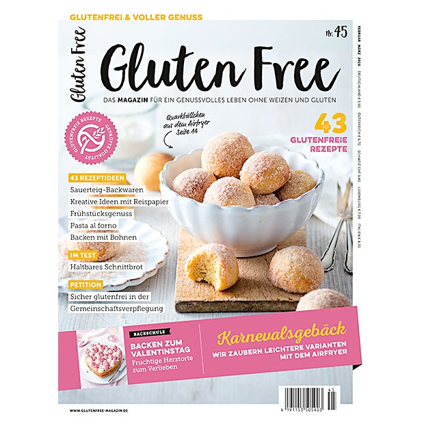 Freuen Sie sich mit der 45. Ausgabe des Gluten Free Magazin auf eine vielseitige Auswahl an glutenfreien Berichten und Rezepten.